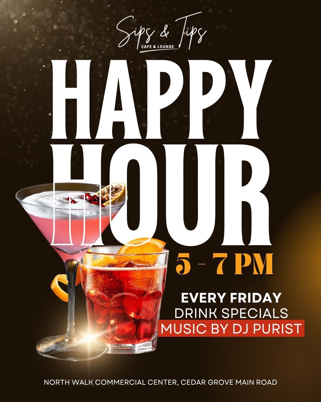 Join us every Friday from 5β7 PMΒ for unbeatable drink specials and vibes by DJ Purist. The perfect way to kick off your weekend β good drinks, great music, and even better company. πΈπΆ